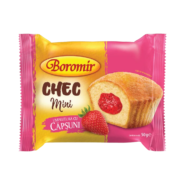 boromir chec mini boromir cu umplutură căpșuni 50gBoromir Chec Mini cu umplutură căpșuni 50g