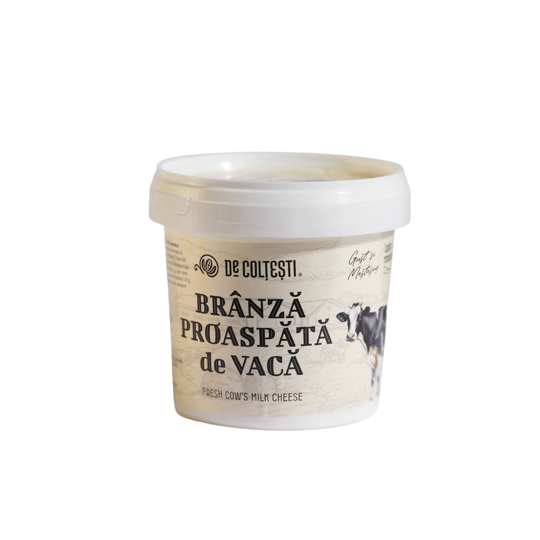 Brânza proaspătă de vacă este un produs curat și cinstit, apreciat pentru gustul său blând și plin, care amintește de cașul făcut odinioară în gospodăriile de la sat. Fabricată din lapte proaspăt de vacă, are o textură fină și gustoasă, ideală pentru a fi savurată simplu, pe pâine, sau în diverse preparate de casă.