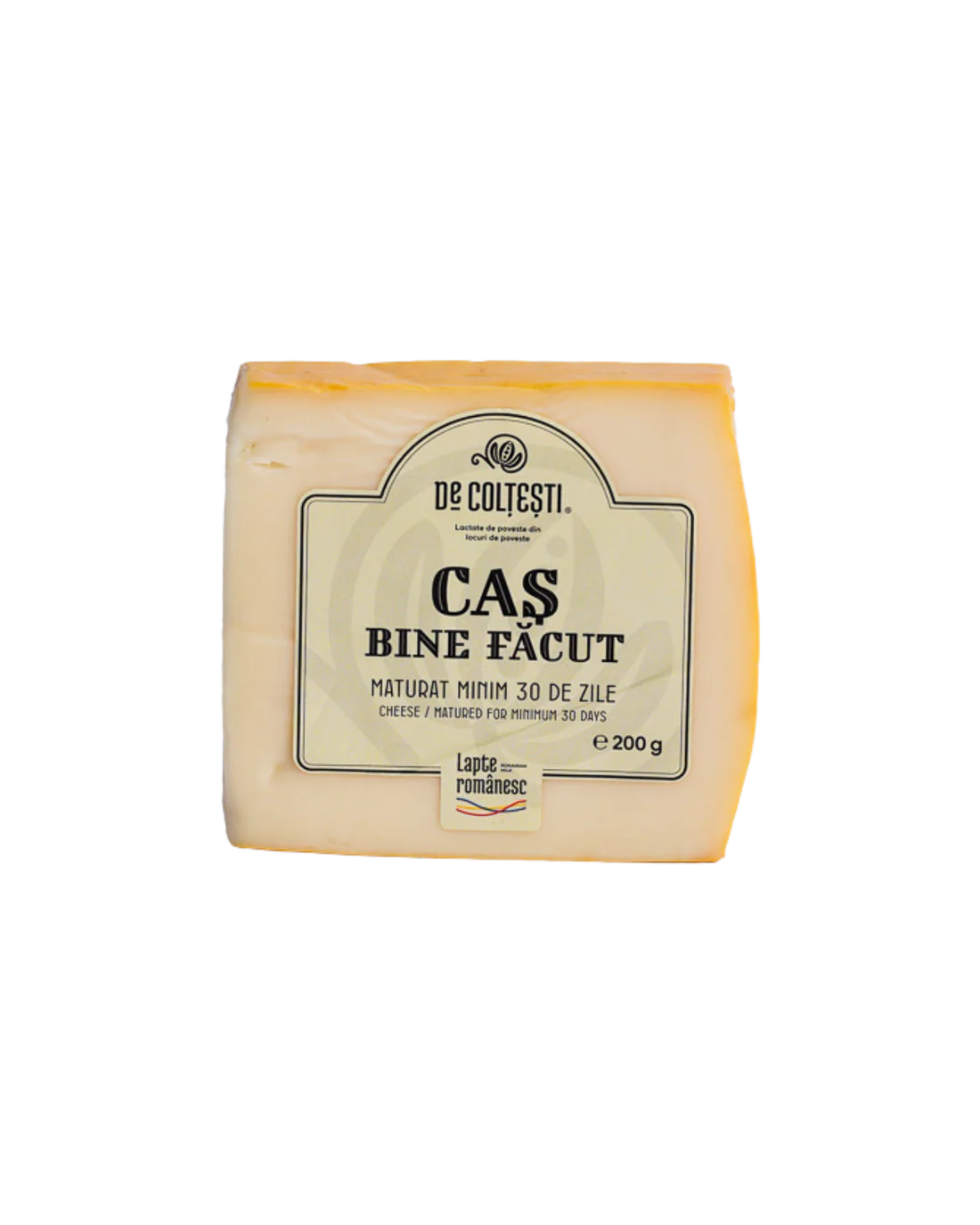 Caș bine făcut este un produs realizat din lapte de vacă, care beneficiază de o îngrijire atentă pe parcursul a 30 de zile. Cu un gust plăcut și echilibrat, aceasta brânză se remarcă prin textura sa fină și aroma delicată. Considerat unul dintre cele mai vândute produse ale noastre, cașul bine făcut este ideal pentru a fi savurat singur sau ca ingredient în diverse preparate culinare, aducând un plus de savoare meselor tale.