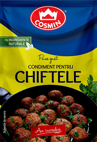 Condimentul pentru chiftele de la Cosmin este preparat cu ingrediente atent selectionate si portionate pentru a garanta succesul oricarui tip de chiftele preparat cu acesta.