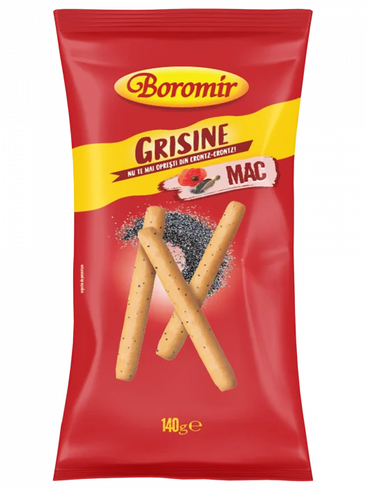 Grisinele cu mac Boromir te încântă cu textura crocantă completată de gustul delicat al semințelor de mac. Sunt snacks-urile sănătoase numai bune de servit la muncă, școală sau pe drum. Dar merg de minune împărțite cu cei dragi și la petreceri sau în serile de film în familie în care vrei să te răsfeți cu ronțăieli delicioase. Le poți servi oricând cu un sos picant de roșii sau un dip cremos de brânză. Grisinele cu mac Boromir sunt produse din ingrediente de cea mai bună calitate pentru a-ți oferi o experiență deosebită. Descoperă în Colecția Boromir și alte sortimente de grisine pe gustul tuturor.