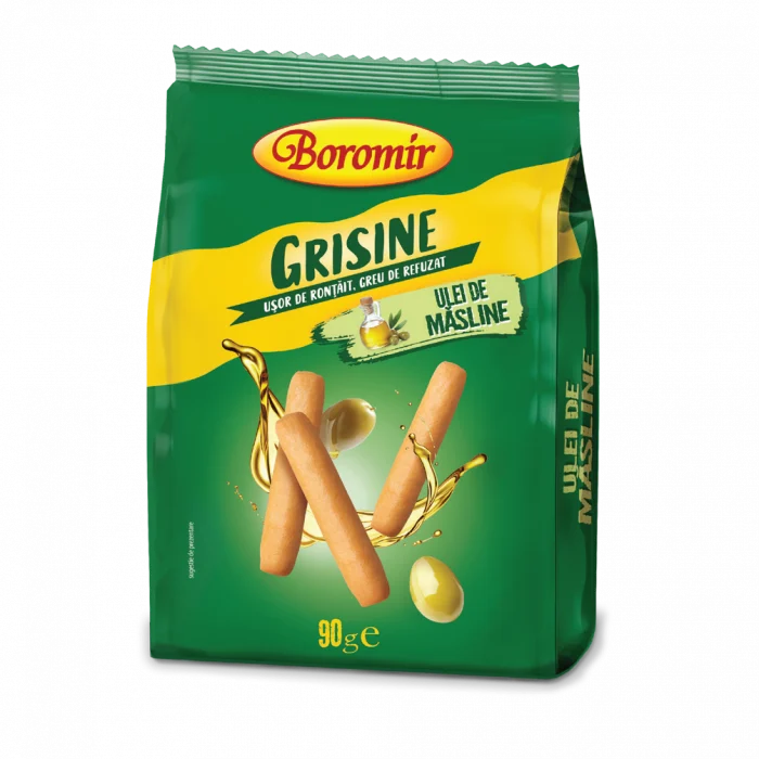 Grisinele Boromir cu 10% ulei de măsline se remarcă prin crusta crocantă și aroma fină de ulei de măsline. Merg foarte bine servite la muncă, școală sau când ești pe drum. Și sunt snacks-urile sănătoase de nelipsit de la petreceri sau în serile de film petrecute cu prietenii sau familia. Iar dacă le servești și cu un sos gustos, experiența va fi cu atât mai încântătoare. În prepararea lor se folosesc ingrediente naturale de cea mai bună calitate pentru ca tu să te bucuri de o gustare pe cât de delicioasă, pe atât de sănătoasă. Descoperă și alte sortimente de la Boromir și împarte-le cu cei dragi pentru a te bucura și mai mult de gustul lor inconfundabil.