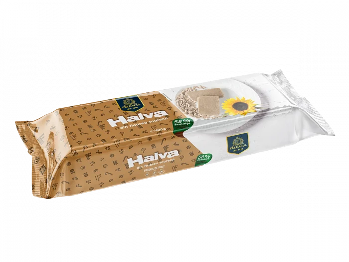 Halvaua Feleacul conține 55% semințe de floarea soarelui ce îi conferă un gust unic de care nu te mai saturi. În prepararea sa se folosesc semințe de floarea soarelui atent selecționate pentru a-ți oferi o experiență memorabilă. Este un desert perfect de servit și în zilele de post, îndulcindu-te complet cu gustul său bogat. Halvaua cu semințe de floarea soarelui face parte din colecția Feleacul de dulciuri preparate după rețete tradiționale românești, astfel încât să-ți ofere ocazia să redescoperi gusturile dulci ale copilăriei.