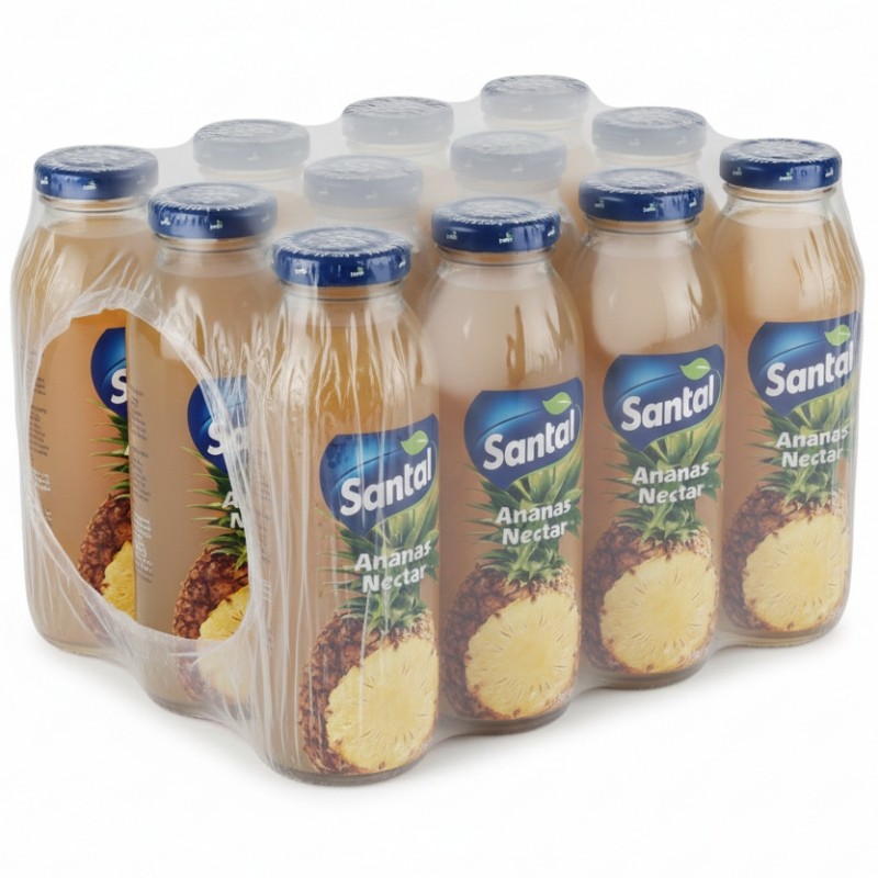Nectar de ananas Santal cu continut minim de fruct 50%. Sucurile Santal din gama Nectar au o consistenta ridicata, sunt obtinute din piureuri si sucuri de fructe, adaos de apa, zahar si acizi alimentari, fara adaos de conservanti, coloranti si arome sintetice.