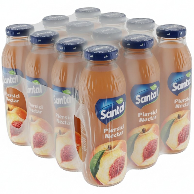 Bautura racoritoare necarbonatata Santal nectar de piersici, cu 50% continut minim de fruct. Sucurile Santal din gama Nectar au o consistenta ridicata, sunt obtinute din piureuri si sucuri de fructe, adaos de apa, zahar si acizi alimentari, fara adaos de conservanti, coloranti si arome sintetice.