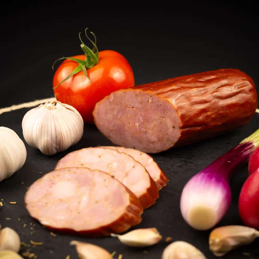 Pulpă porc 98%, sare, condimente naturale.