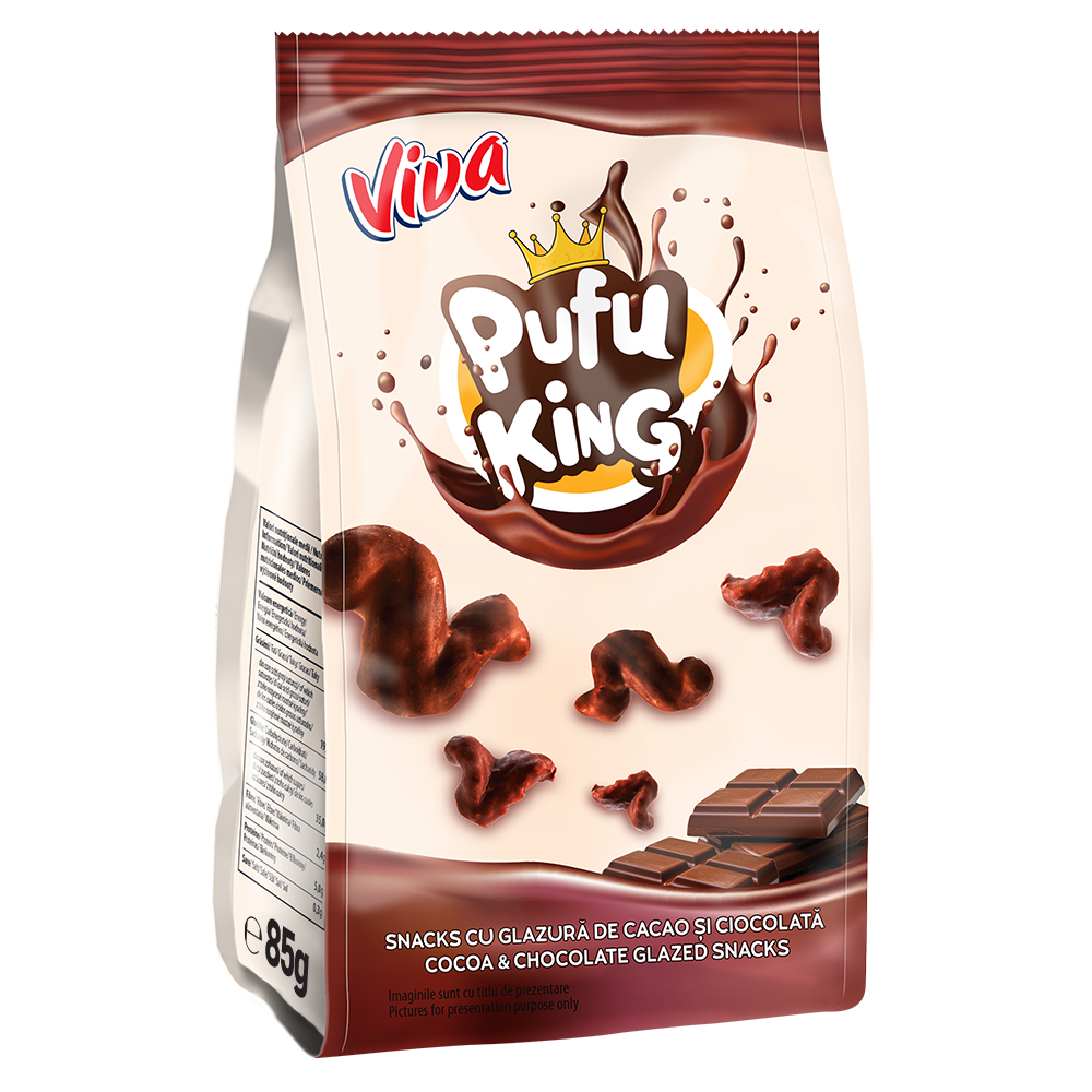 viva pufu king cu glazură de cacao şi ciocolată 85gVIVA PUFU KING cu Glazură de Cacao şi Ciocolată 85g